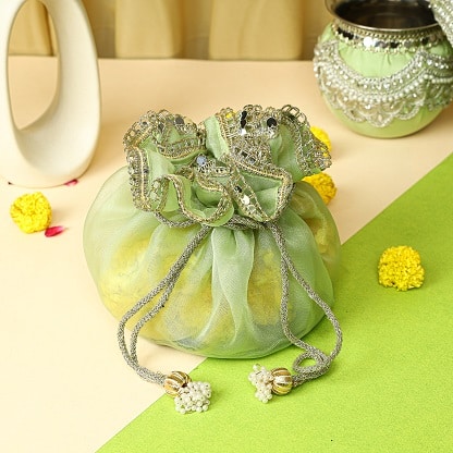• A Matching Potli, Adorned Potli Bag for Festive Glam