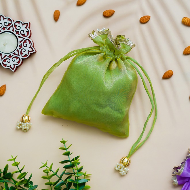 Add a touch of elegance and tradition to your celebrations with our beautifully crafted Organza Potli Bag. Made from premium-quality organza fabric and adorned with delicate handmade mirror work, this potli is more than just a packaging solution — it’s a charming gift in itself.